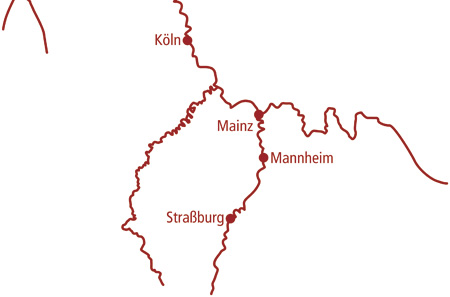 Von Köln über Mannheim nach Straßburg und über Mainz wieder zurück nach Köln.